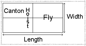 Note: when sizing rectangular flags/ensigns, the ‘Fly’ or ‘Length’ (as in above diagram) is the distance from the ‘hoist’ edge of the flag (halyard edge) to the ‘fly’ edge (the bit that gets tatty first.)