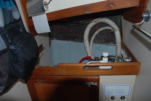 The whole installation was designed to allow as easy access as possible to all the tank connections. The tank was also mounted leaning very slightly aft, with the discharge hose connecting directly to the heads discharge seacock.